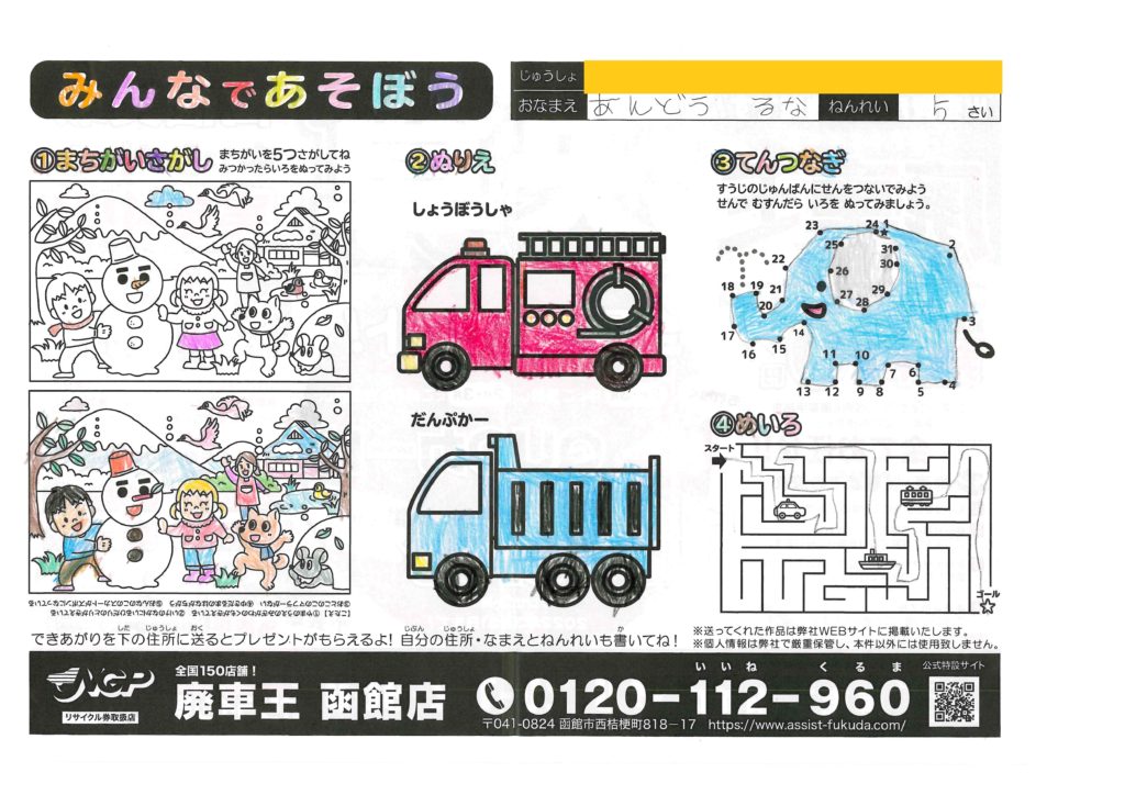 かわいい象さんだね!まちがいさがしもカラフルでとっても楽しい、ありがとう!