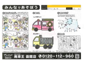 2022年2月19日 / 最終更新日時 : 2022年2月19日 fukuda-admin ぬりえキャンペーン すがわらるいちゃん(7さい) だんぷかー綺麗だね…!しょうぼうしゃも前と後ろで色が違うの細かいね!まちがいさがしも正解! コメントを残す コメントをキャンセルメールアドレスが公開されることはありません。 * が付いている欄は必須項目ですコメント 名前 * メール * サイト 上に表示された文字を入力してください。