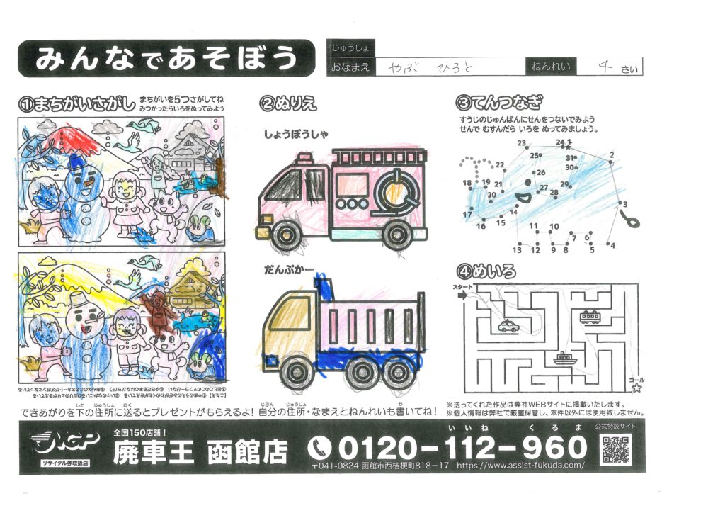 2回目の応募ありがとう!青が好きなのかな、いっぱい塗ってくれてありがとう!山噴火しそう…!