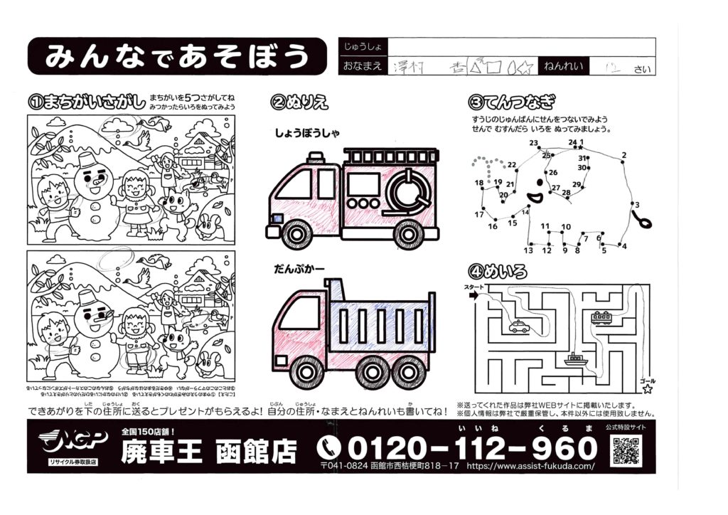 2022年5月11日 / 最終更新日時 : 2022年5月11日 fukuda-admin ぬりえキャンペーン 澤村杏ちゃん(12さい) さてはボールペンだね…!細かい塗りが目をひくね、とても綺麗に塗れてるよ!漫画とかでも使われるけど、カケアミって面白い塗り方があるんだよね…細かい作業が得意ならぜひ色んな塗り方にチャレンジしてみてね! コメントを残す コメントをキャンセルメールアドレスが公開されることはありません。 * が付いている欄は必須項目ですコメント 名前 * メール * サイト 上に表示された文字を入力してください。