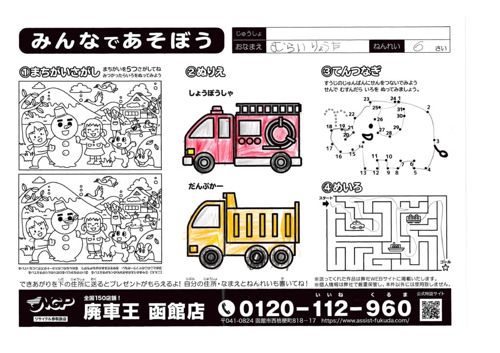 実際の消防車に近い色がいいね、お名前も上手!ありがとう!