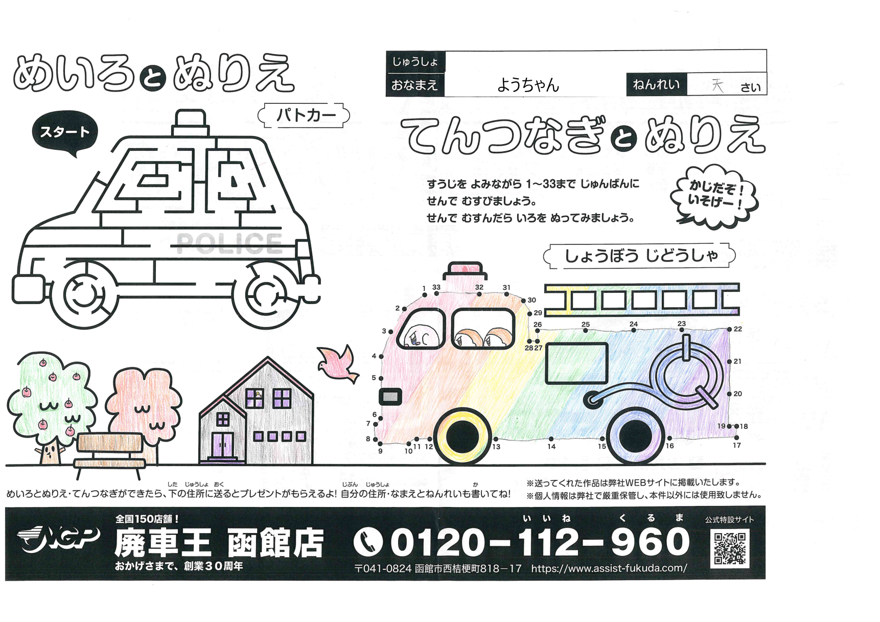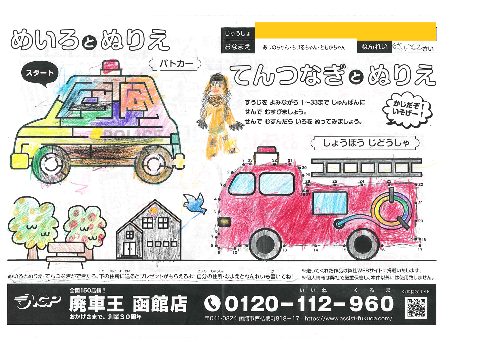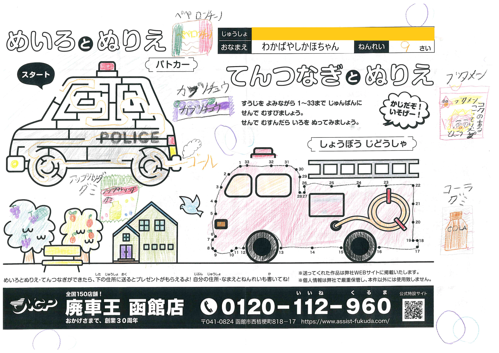 くるりゆうかちゃん(9さい) 2021年11月15日2021年11月15日 綺麗な塗りだね、色選びが完璧!ありがとう! ようちゃん(10さい?天才!) 2021年11月15日2021年11月16日 カービィたちが乗った虹色の消防車がとっても綺麗!ウィスピーウ… ほしかあつの・ちづる・ともかちゃん(6さい・2さい) 2021年11月15日2021年11月15日 3にんで塗ってくれたんだねありがとう!真ん中の子は消防士さん… おのかえでちゃん(10さい) 2021年11月12日2021年11月12日 本物の消防車と同じ赤色がとてもあざやか!なめらかな塗りがきれ… わかばやししゅんやちゃん(12さい) 2021年11月8日2021年11月8日 塗りがとても丁寧だね!とおくから応募ありがとう! わかばやしかほちゃん(9さい) 2021年11月8日2021年11月12日 たくさんのお菓子がうまくかけててすごく楽しいよ!お目当てのお… はざわゆうせいちゃん(7さい) 2021年11月8日2021年11月8日 窓の水色があざやかでいいね!緑色の鳥はウグイスかな? はざわそうごちゃん(3さい) 2021年11月8日2021年11月8日 金色のはしごが格好いいね!おうちの色使いが綺麗! つしまいおちゃん(4さい) 2021年11月8日2021年11月8日 あわい色使いがいいね!カワセミみたいな色の鳥が綺麗! ← 前へ 1 … 31 32 33 34 次へ →